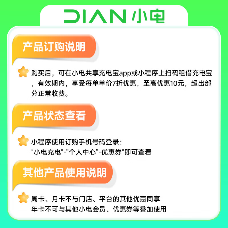 【账号直充】小电充电会员『7天』接口直充丨立即到账丨24小时全天秒单!