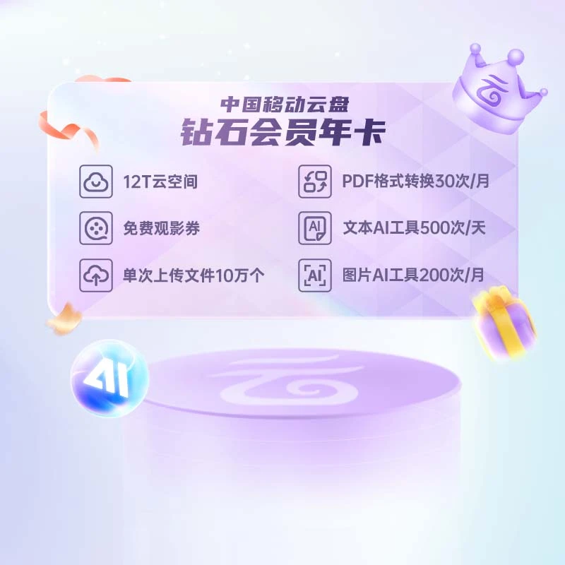 【账号直充】中国移动云盘钻石会员『12个月』接口直充丨立即到账丨24小时全天秒单!