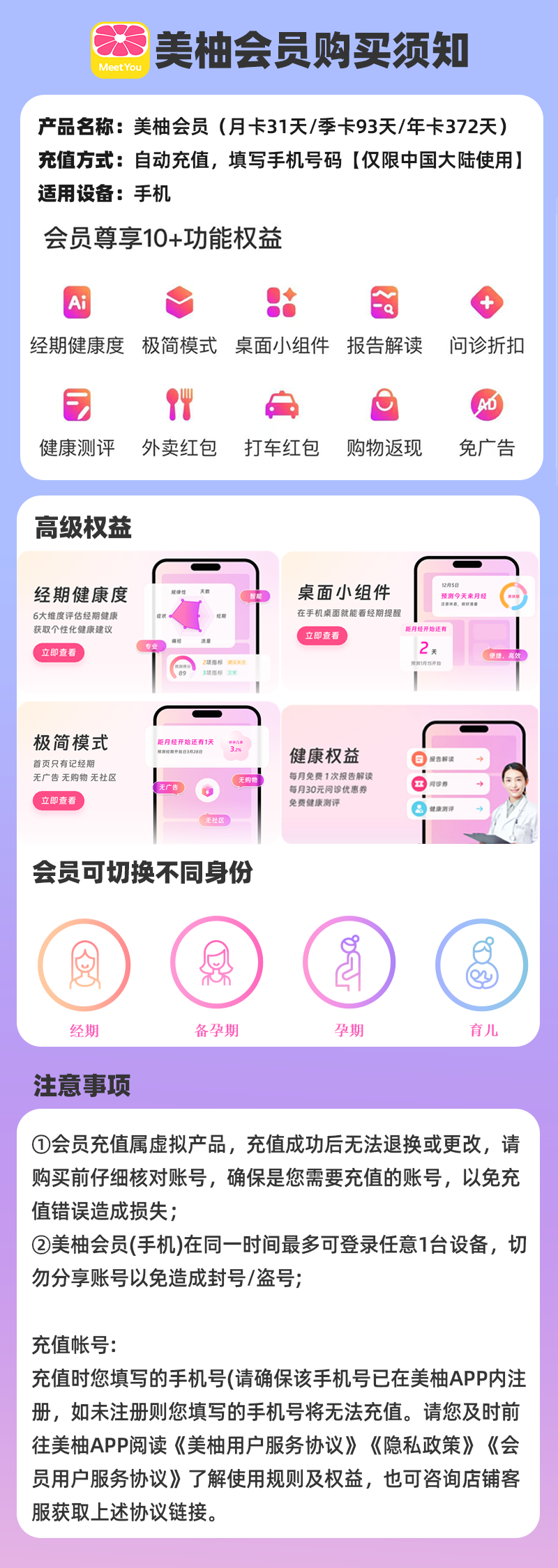 【账号直充】美柚VIP会员『1个月』接口直充丨立即到账丨24小时全天秒单!终端限价12元