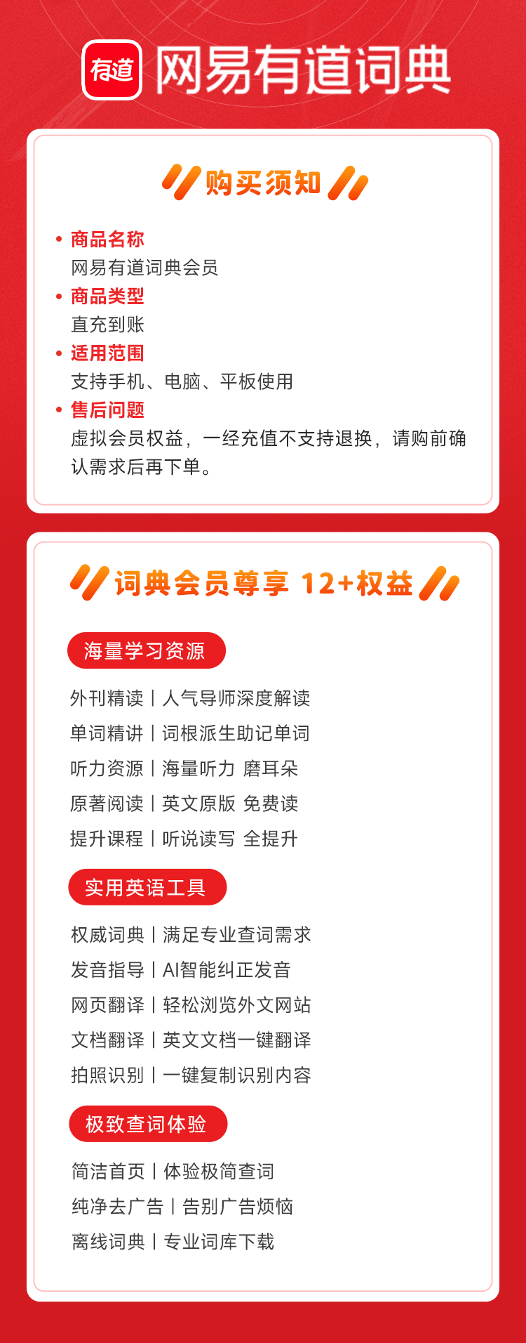 【账号直充】网易有道词典会员『6个月』接口直充丨立即到账丨24小时全天秒单!终端限价88元