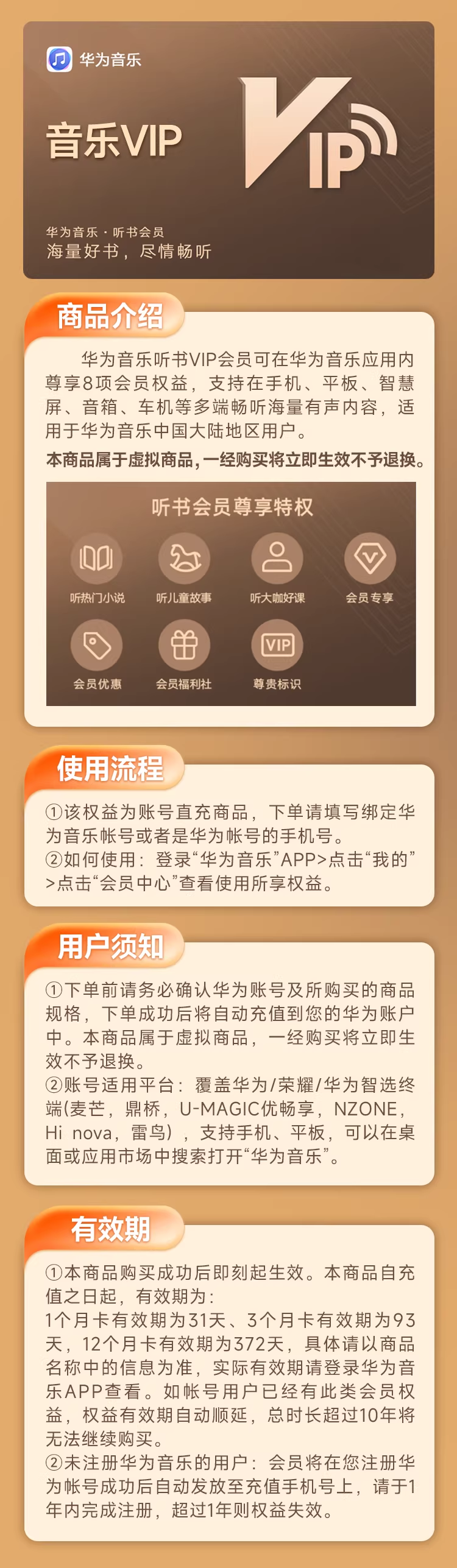 【账号直充】华为-华为音乐听书VIP『12个月』接口直充丨立即到账丨24小时全天秒单!